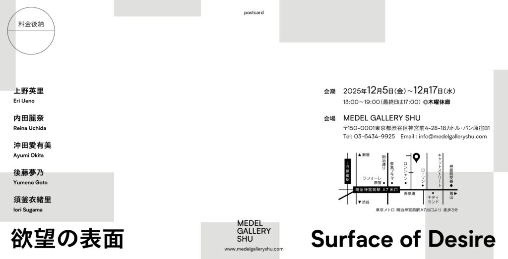 | Web/ | https://medelgalleryshu.com/exhibition/surface-of-desire-december-5-17-2025/ メディア掲載/ information |