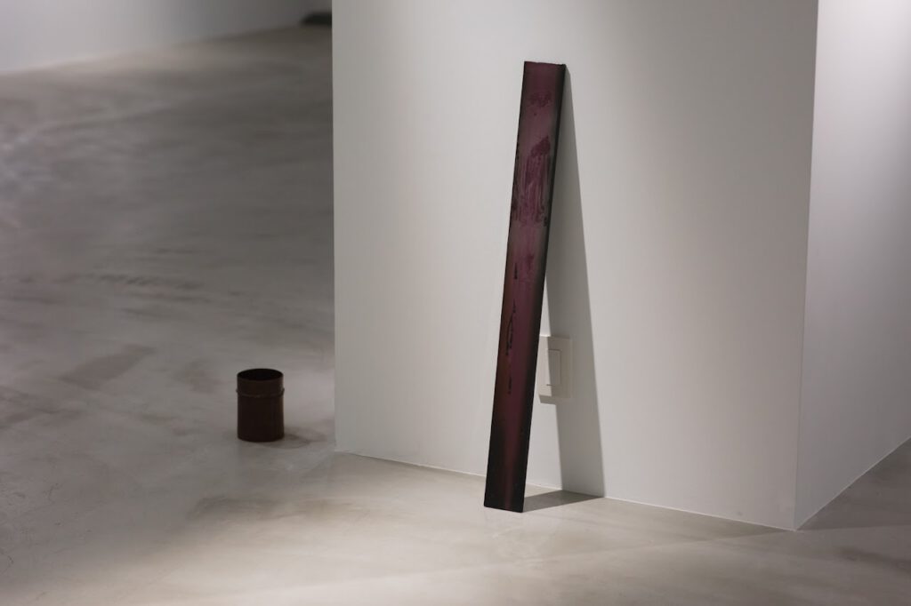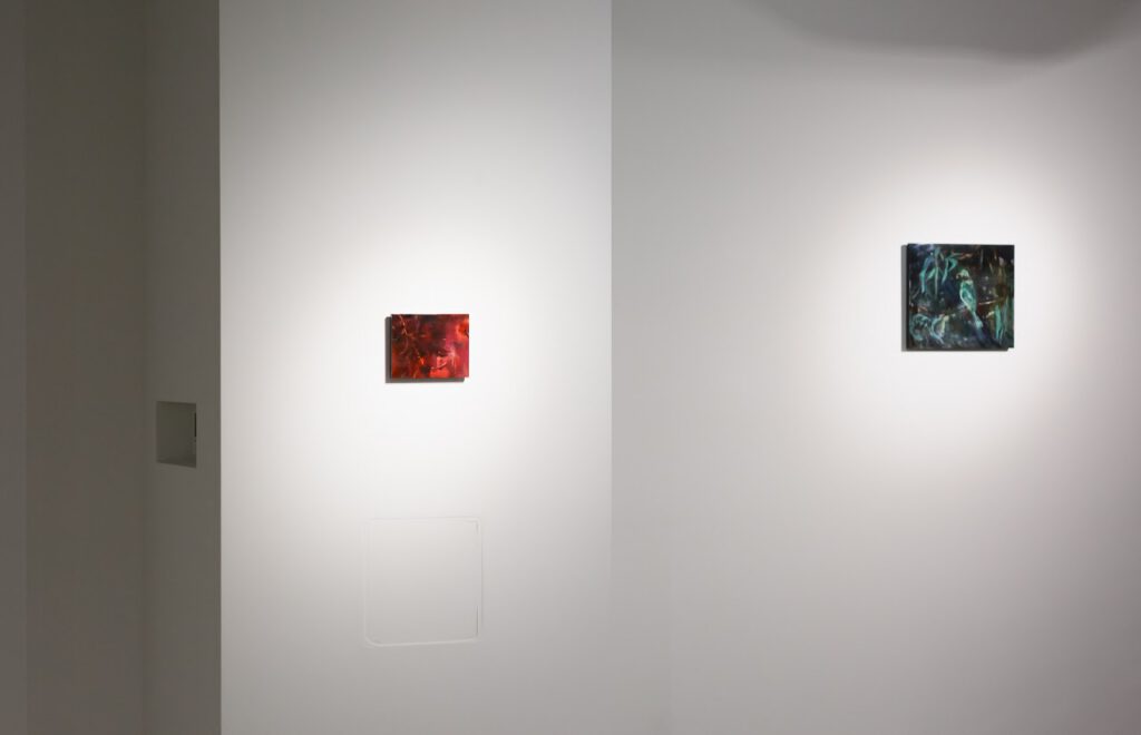 In this exhibition, Okita metaphorically see the lacquer extracted from wounded tree bark as a drop of blood, and through the repeated process of polishing and drawing, she observes the autonomous changes that lacquer undergoes. She describes the process as being “as if facing a human with emotions.” The works on display represent a series in which Okita positions lacquer as a co-creator.