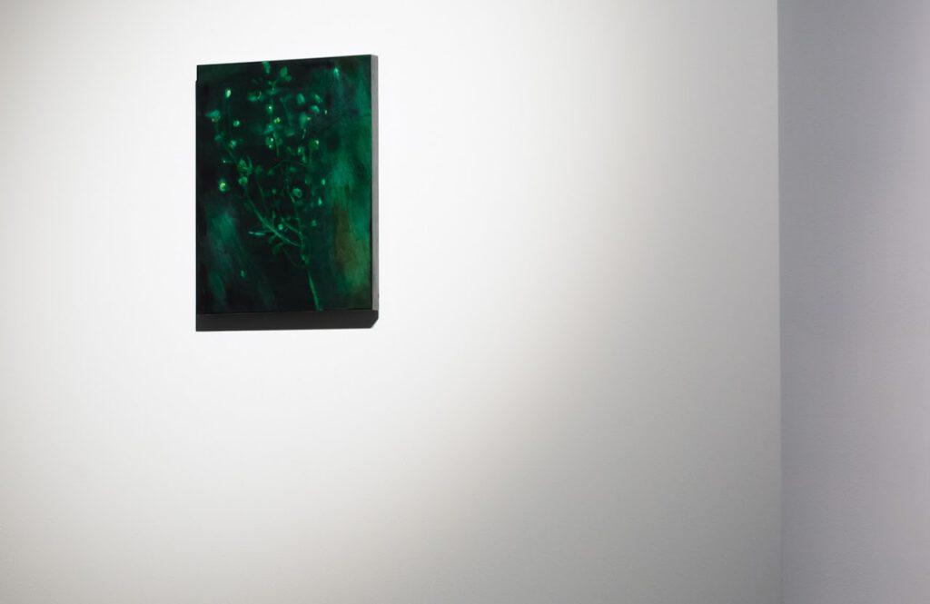 沖田愛有美は、漆の生育圏をもつ東アジアや東南アジアに発展した漆の絵画を独自の視点で再解釈します。ベトナムのソン・マイ(sơn mài)、中国の漆画(qī huà)として知られるこれらの芸術形式は、日本では絵画と工芸の境界に位置するがゆえに定着することはありませんでした。しかし沖田はこの二重性にこそ可能性を見出し、視覚と触覚、目と手の芸術の再会ともいうべき領域の結節点を探求してきました。近年は、植物としての漆のあり方に立ち返ることで、人間と自然環境との連続性へと関心を広げています。