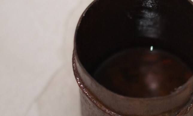 As it met the outside air, the liquid darkened into a reddish-brown hue.