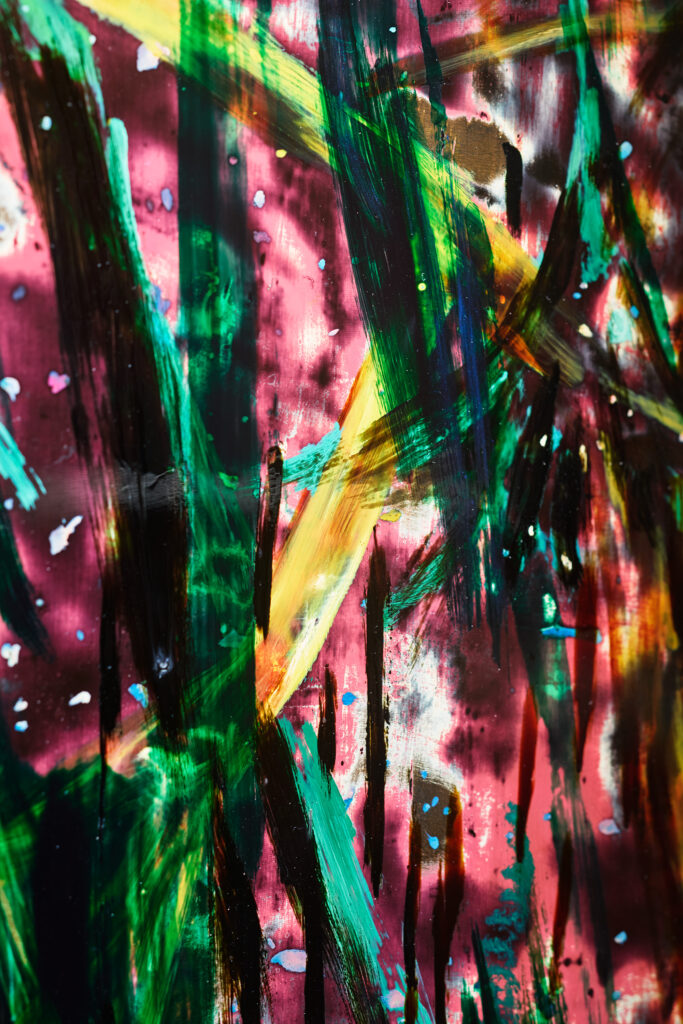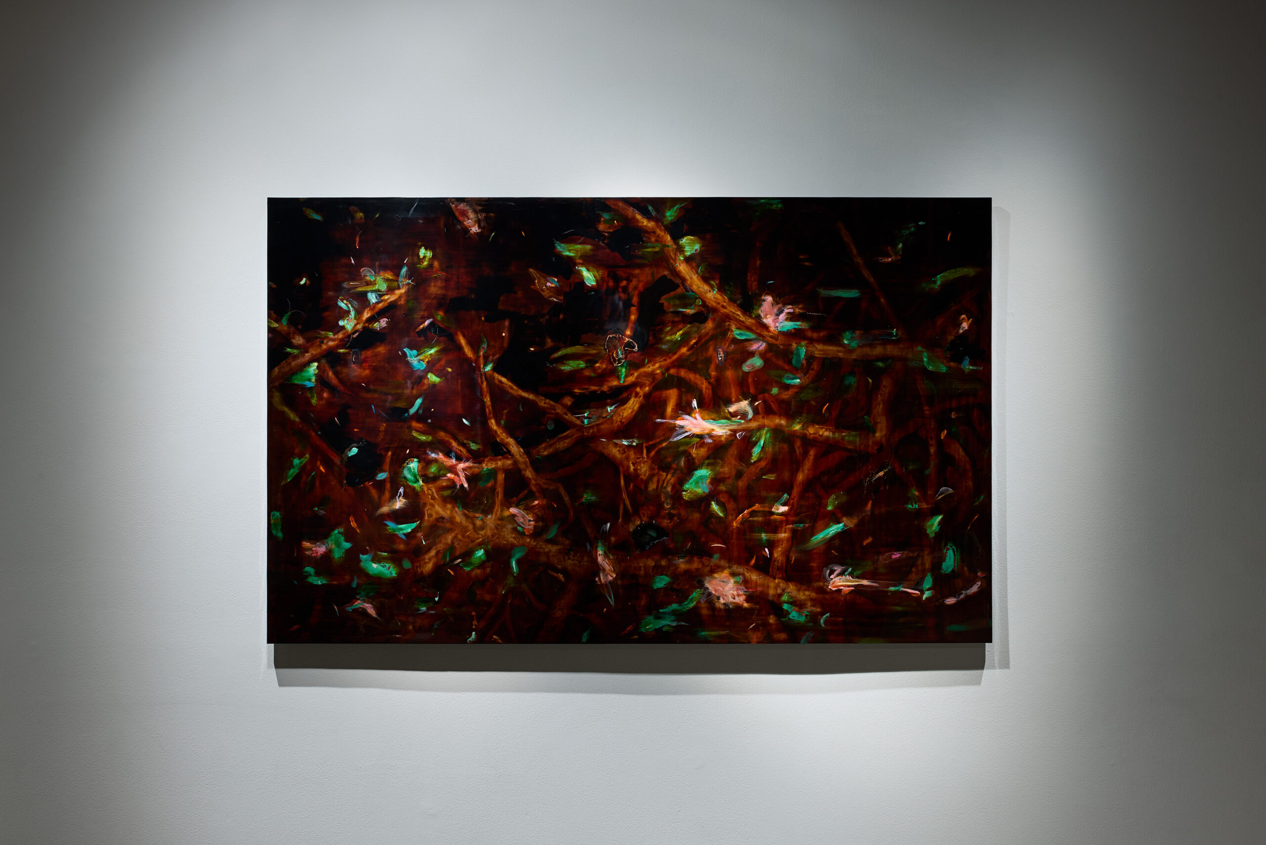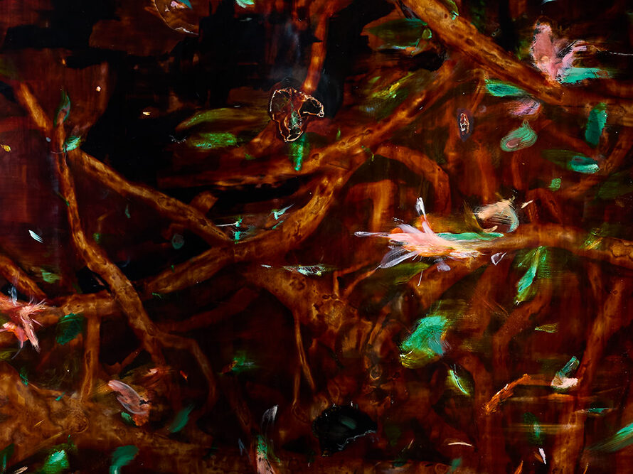 Ayumi Okita creates urushi lacquer paintings that regard lacquer as a mediator between humans and nature, examining relationships between human and non-human entities.
