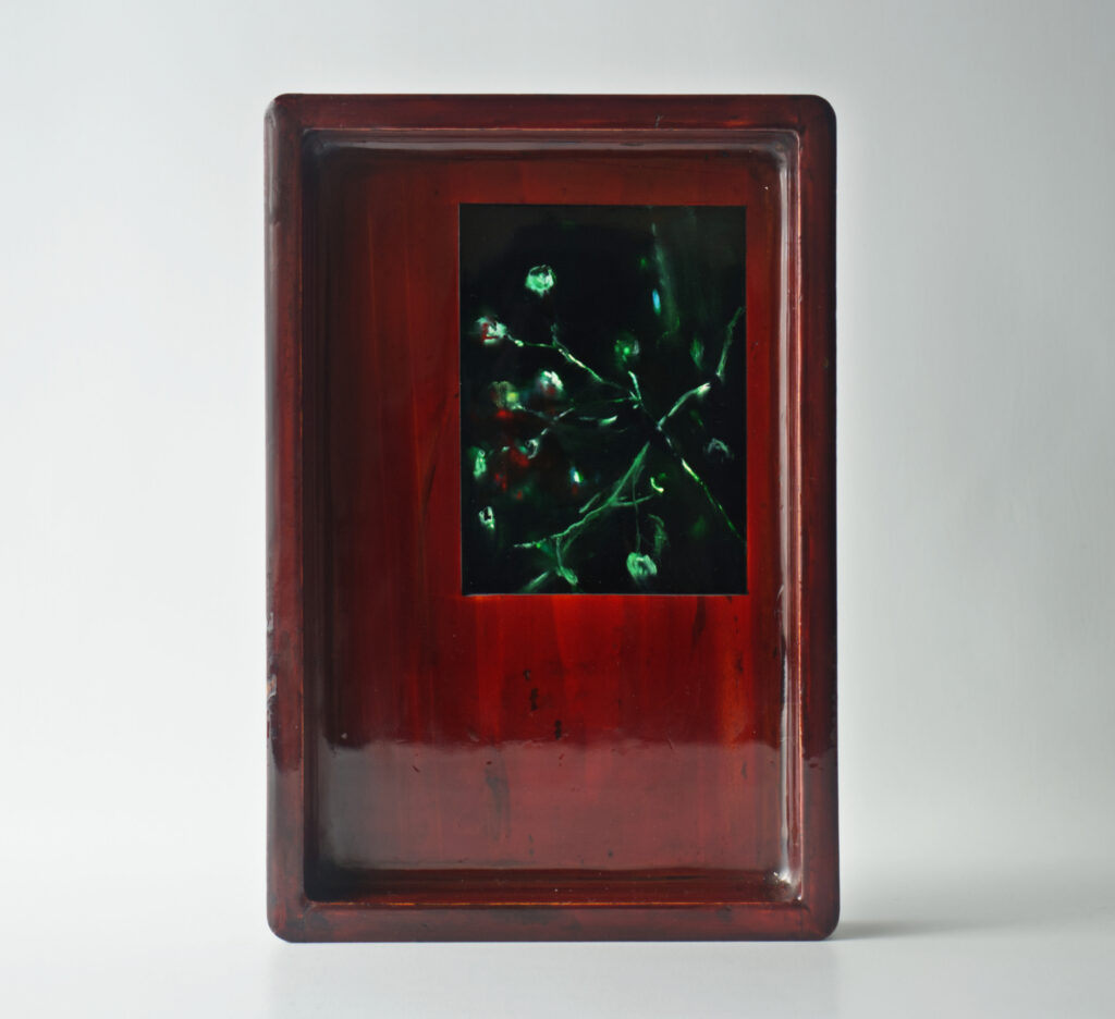 urushi (lacquer), linen mesh, diatomaceous earth, (rice husk)